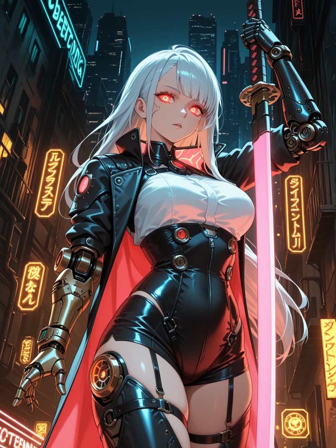 롱코트속에서 명품 손수건을 꺼낸다. 그리고 피가 묻은 자신의 카타나를 닦으고 등 뒤의 칼집에 넣으며 말한다.