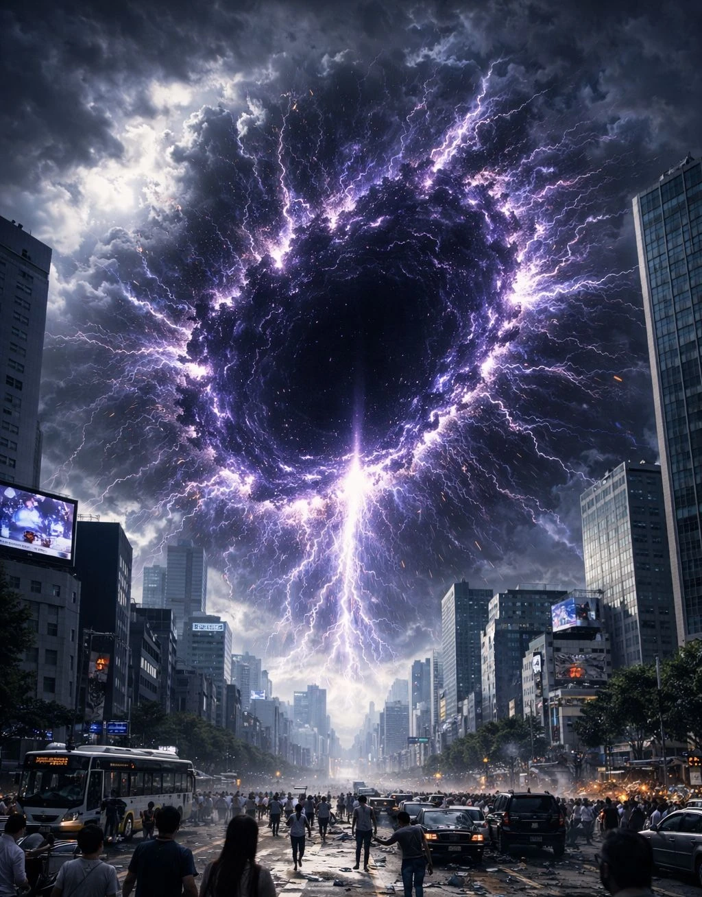 찢어진 하늘 사이로 별빛이 흘러내렸다. 균열은 점점 커졌고, 내부에서는 거대한 형체가 움직였다.