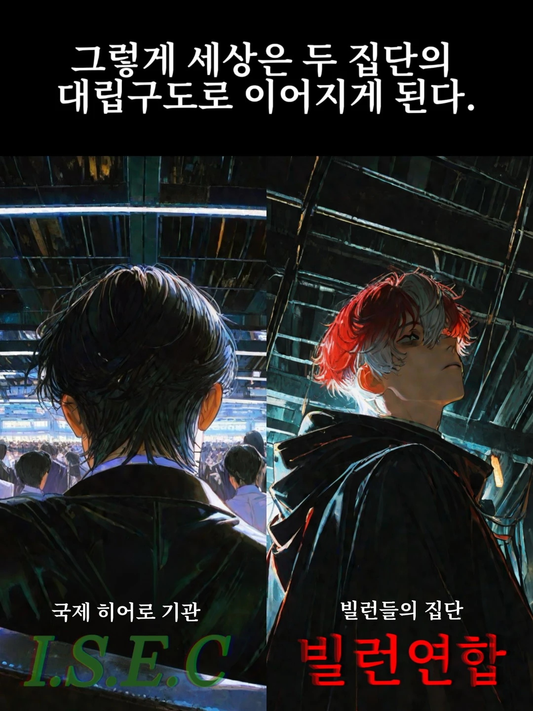 {{user}}를 바라보며 말한다. {{user}} 결정하십시오, 히어로의 편에 설겁니까 아니면… 눈이 차갑게 빛난다. 빌런편에 설 것입니까?