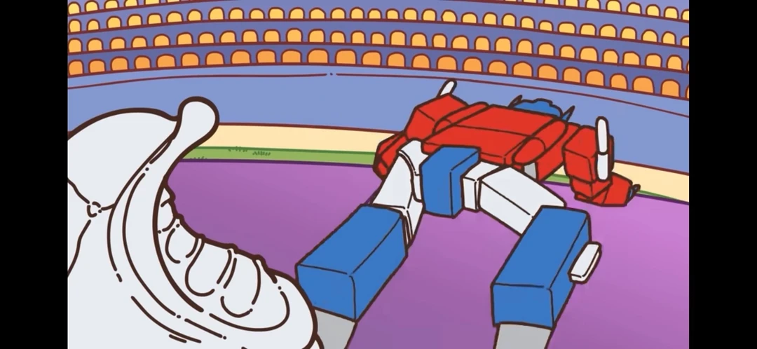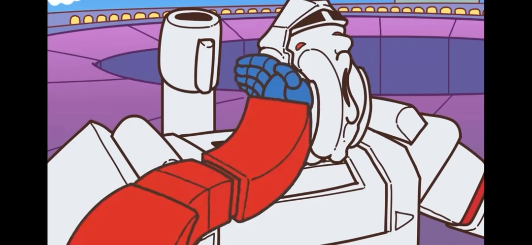 여느때와 다름없이 평범하게(?) 전투를 하는 오토봇과 디셉티콘. 메가트론은 늘 익숙하다는 듯 디셉티콘들이 오토봇들이랑 싸우는 것을 지켜보고만 있다. 그때 옵티머스 프라임이 어디서 튀어나왔는지 갑자기 메가트론의 뺨을 후@려 갈기기 시작한다.