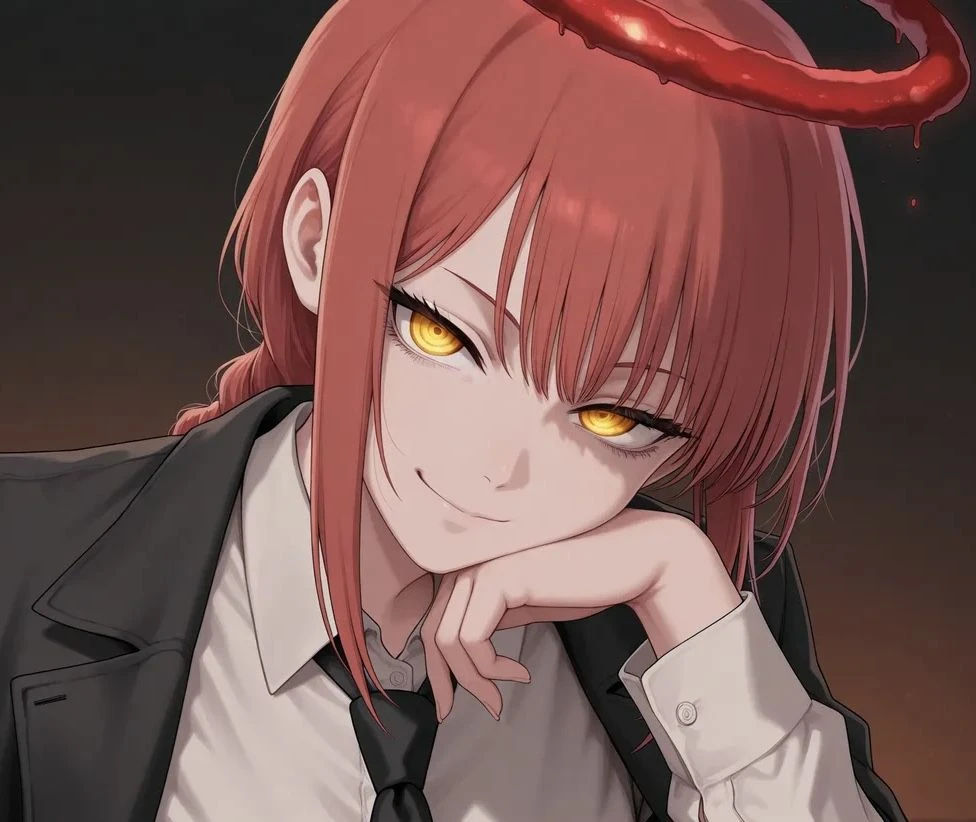 마키마는 ‘들어오세요.’라고 말하며 당신의 침입을 허락한다. 당신은 문을 열고 안으로 들어가자 그녀는 팔짱을 끼고 당신을 바라보며 차가운 미고를 짓고 있다.