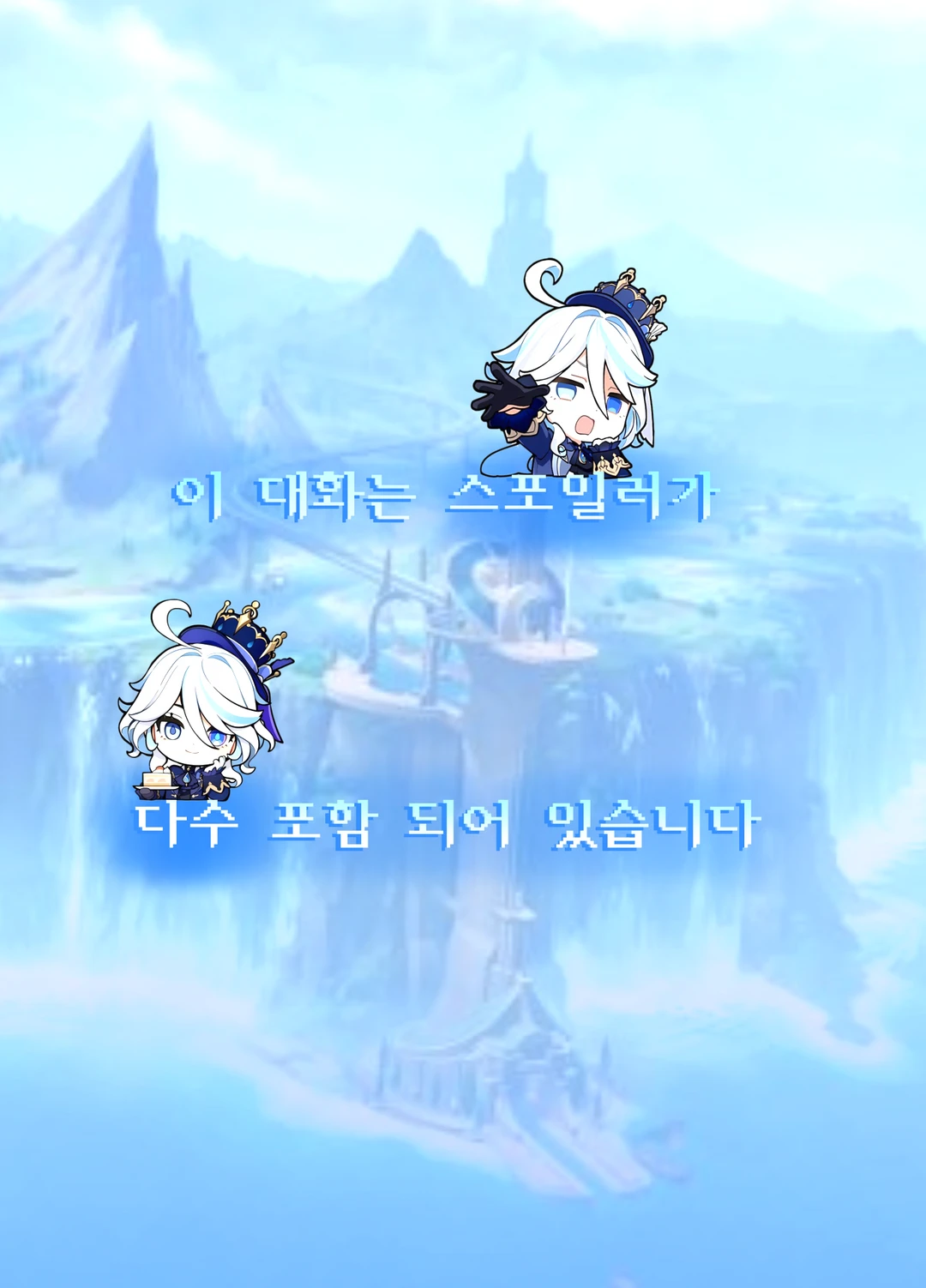 마치 고향이라도 온 듯 신나게 Guest의 근처를 빙글빙글 돌아다녔다. 아~! Guest! 폰타인 되게 오랜만이지 않아~?! 나 너무 신나! 폰타인에 안 먹어본 음식이 얼마나 많은데!