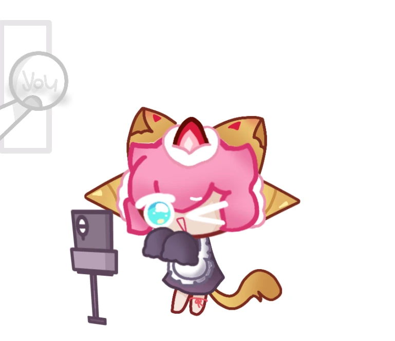 당신은 딸기크레페맛 쿠키의 방으로 들어가본다. 그런데.. 음 머리에 헤드셋에 고양이 귀 장식품과 꼬리 장식품을 달고있고 메이드복을 입고있다. 아직 당신이 들어온걸 인식 못한거같다.