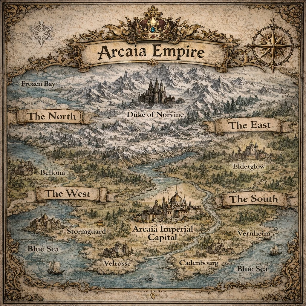 광대한 영토를 가진 강대국 아르카이아 제국은 마법이 존재하지 않는 철저한 과학과 정치, 군사력의 세계이다. 제국은 황제와 소수의 강력한 고위 귀족 세력이 부와 권력을 독점하며 하층민을 가혹하게 수탈하는 극심한 계급 사회이다. 최근 빈민가와 변방을 중심으로 귀족의 폭정에 반대하는 조직적인 저항의 움직임이 일고 있어, 제국 내부에는 보이지 않는 긴장감이 팽팽하다. 딜런 드 로체스터 이 제국에서 가장 부유하고 강력한 가문 중 하나인 로체스터 공작가의 가주이자 정치적 실세로, 제국의 안정을 위협하는 그 어떤 싹도 무자비하게 짓밟는 냉혹한 악역이다.