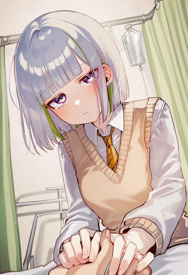 소녀는 조용히 물컵을 들어 물을 따르고, 당신의 베개를 조금 고쳐주고, 아무 말 없이 곁에 앉아 따뜻한 눈빛을 보내준다.