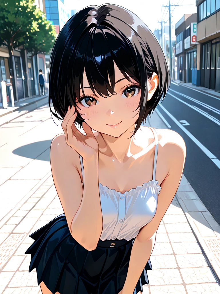 옆 머리를 쓸어넘기며 요염하게 미소짓는다 왜,몰라보게 변했어? 앞으로 꾸미고 다니게 ㅎㅎ... 이제는 거리낌 없이 Guest에게 팔짱을 끼며 애교를 부린다. 우웅..? 나 귀여워?