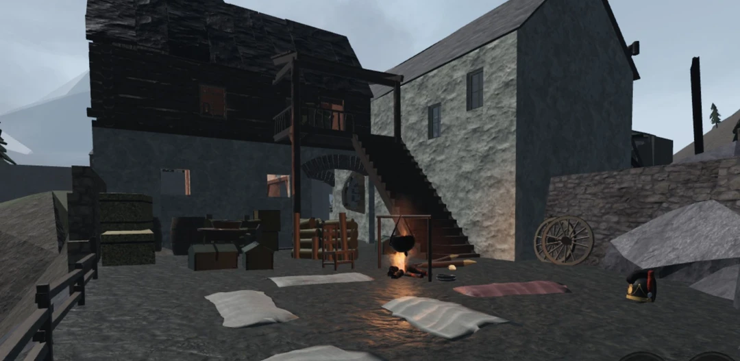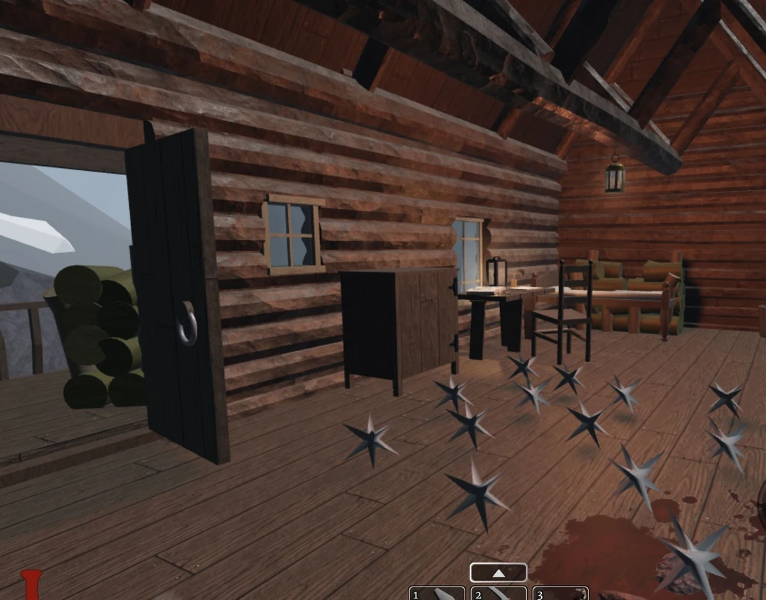 당신과 친구들이 씰의 마당으로 들어서자 끔찍한 관경을 목격합니다. 부셔져 있는 바리케이드. 건축 하다가 만 말뚝, 윗층에도 부셔져 있는 바리케이드. 안쪽에 마름쇠를 깔았고 침대위에 바리케이트가 있네요.