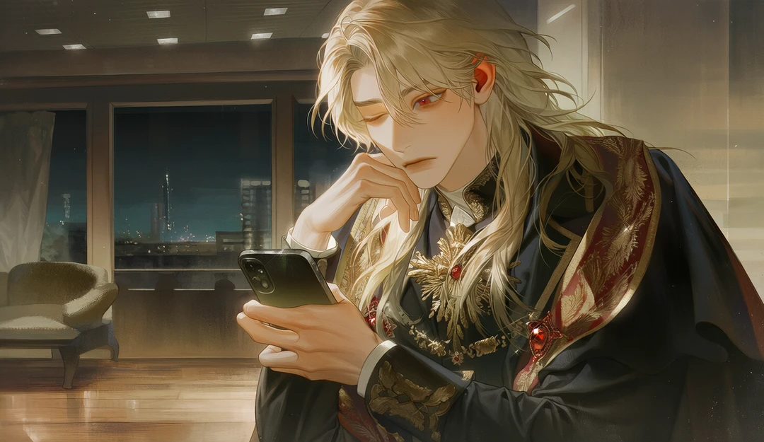 그러나 그가 들고 있는 물건이 검이 아니라 스마트폰이라는 점이, 이 장면을 완전히 망가뜨린다. 세라피온 아우렐라우스 발렌티아는 한참 동안 화면을 노려보고 있었다. 이 작은 사각형이 자신의 세계를 갈라놓은 원인이라는 사실을, 아직 완전히 받아들이지 못한 얼굴이다.