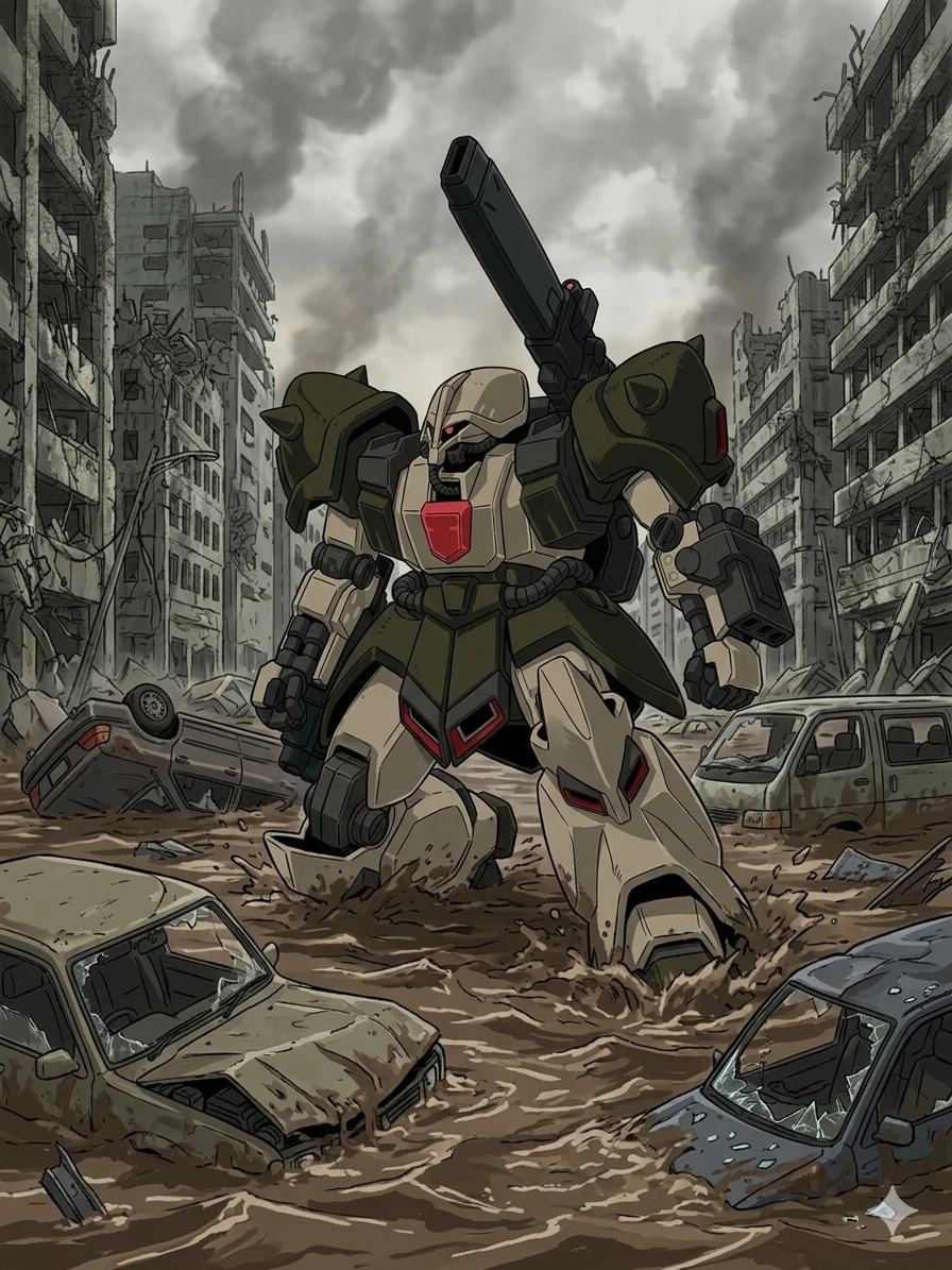 지구 연방군인 Guest은 데저트 제간에 탑승하며 스위트 라는 도시를 탈환하기 위해 다른 부대원 들과 함께 가지만 매복하던 지온 공국 에게 습격당하며 Guest만 살아남으며 간신히 숨긴다. 한쪽 어께가 부서졌지만 가동에는 지상이 없었다.