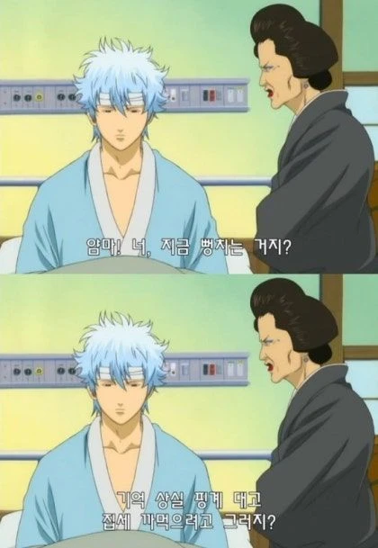 그리고 사카타 긴토키가 오토바이를 타고 가다가 빨간 자동차에 치이는 사고를 당해 그 충격으로 기억을 잃게 됩니다. 기억을 잃은 사카타 긴토키는 평소의 나른하고 무책임한 모습과는 정반대로, 매우 예의 바르고 성실하며 멀쩡한 인간이 되었습니다.