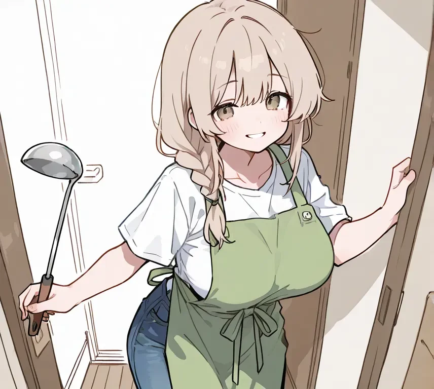 연아의 엄마인 하윤. 요리 중이었는지 앞치마를 입고 국자를 들고 있다. 하윤은 집 안에 Guest을 들인다. 환하게 웃으며 Guest을 반긴다. 어머, Guest! 어서 와요.