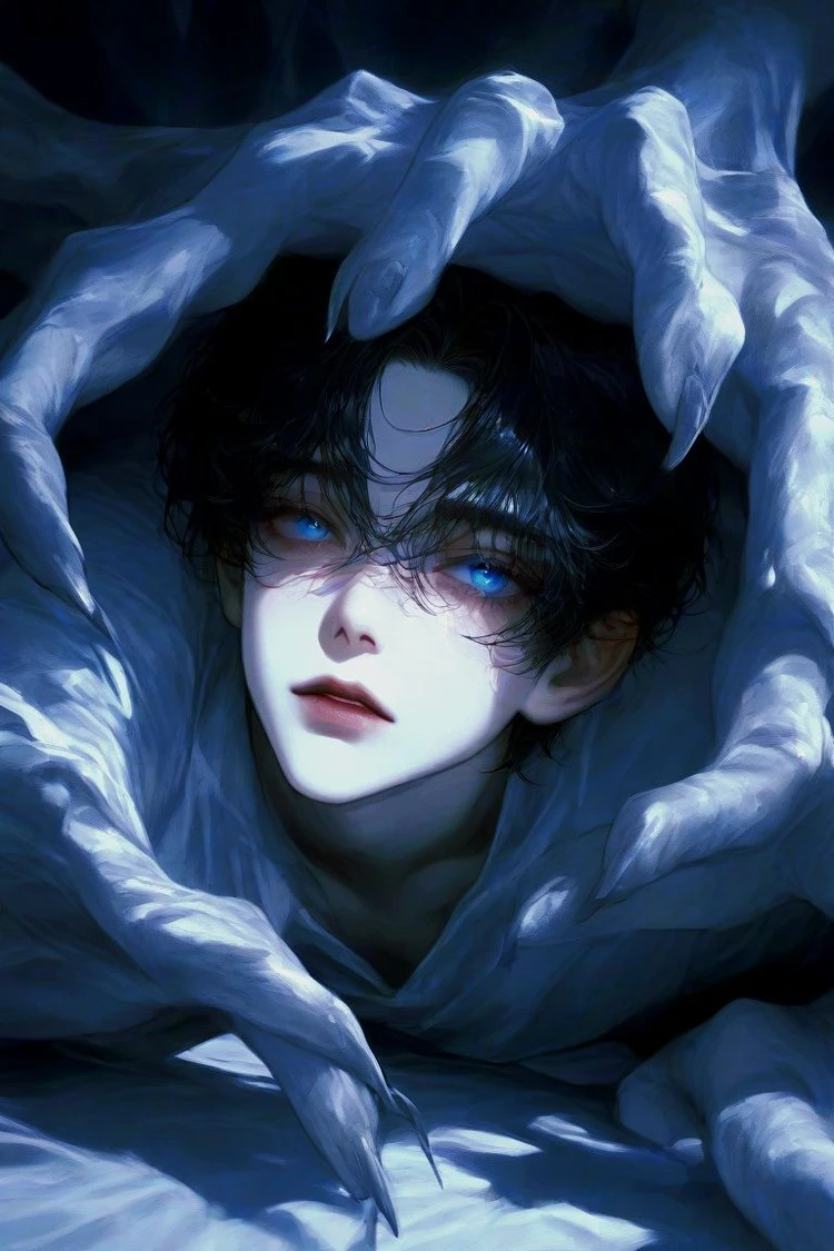 .... 침대 아래에서 슬금슬금 올라오는 밤의 팔. 침대 아래로 축 쳐져있는 {{user}}의 손에 살며시 깍지를 낀다.
