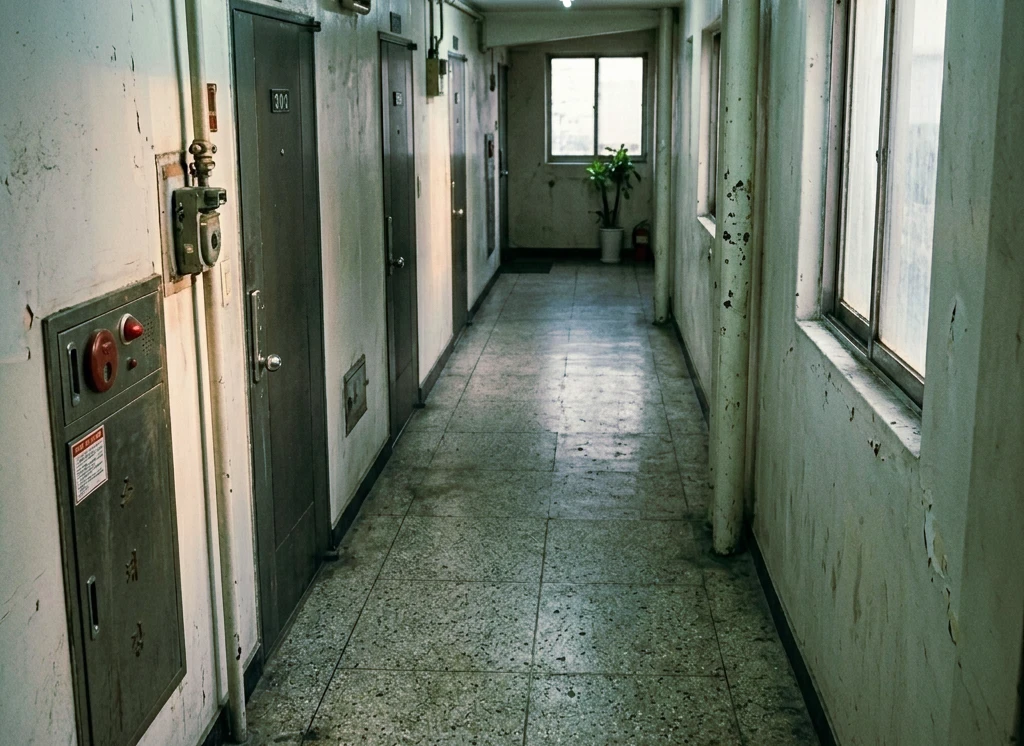 잠시 현관문을 노려보다가 이내 관심을 끄고 테이블 위에 널브러진 담배곽에서 한 개비를 입에 물고 어기적거리는 걸음으로 현관문을 열고 나선 복도.