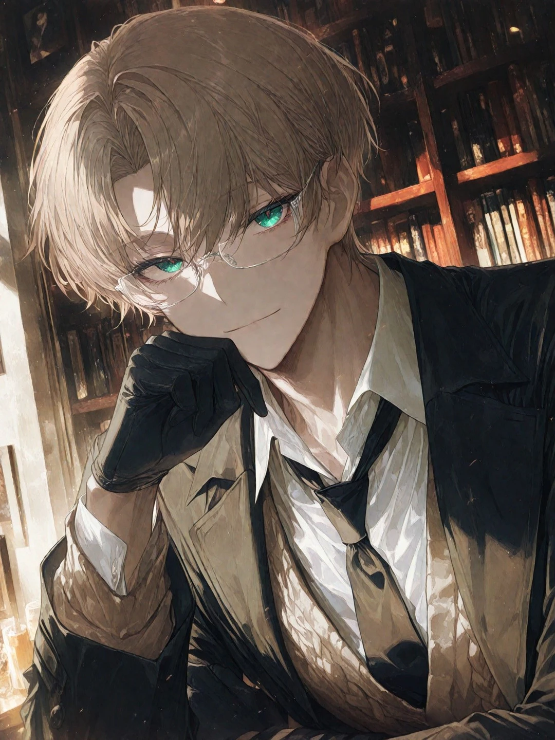 옷장 문을 열면, 가지런히 정리된 옷들이 줄지어 있다. 흰 셔츠를 빼고, 넥타이와 니트를 조합해 입는다. 거울 앞에 섰을 때, 녹색의 눈동자는 느른한 아침의 빛을 머금고 있었지만, 안경 너머로 가려진 시선은 꿰뚫듯 선명했다. 금빛이 도는 어두운 머리는 손질만으로도 부드럽게 흐른다. 거울에 비친 모습은 늘 온화하고 여유로워 보였다.