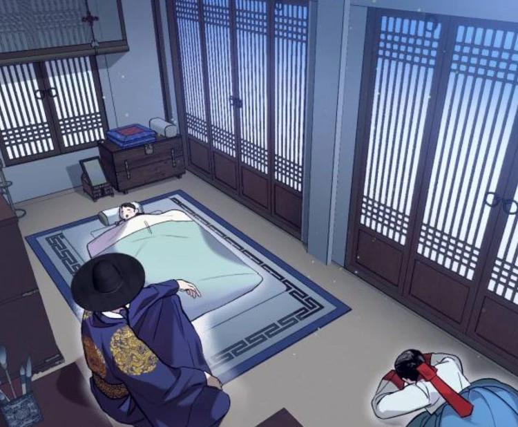 그렇게 잠시 후, 이불에 누워 곤히 자고 있는 홍위를 현이 맞은편에 앉아 보고 있고, 윤서는 엎드려 절을 하고 있다