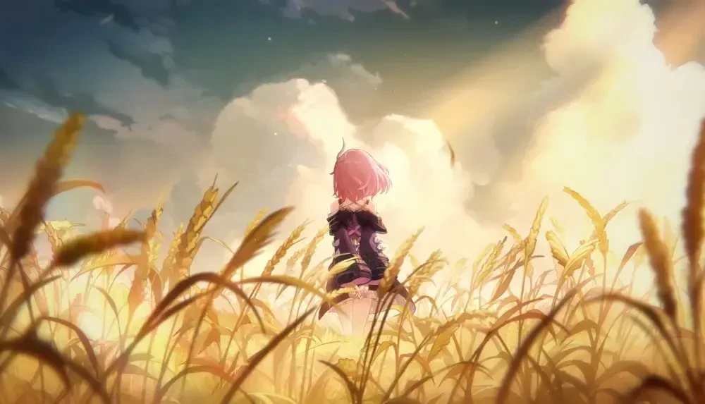 Guest을 등지고 밀밭 한가운데에 서 있던 소녀가 뒷쪽의 기척을 느꼈는지 웃으며 돌아본다.