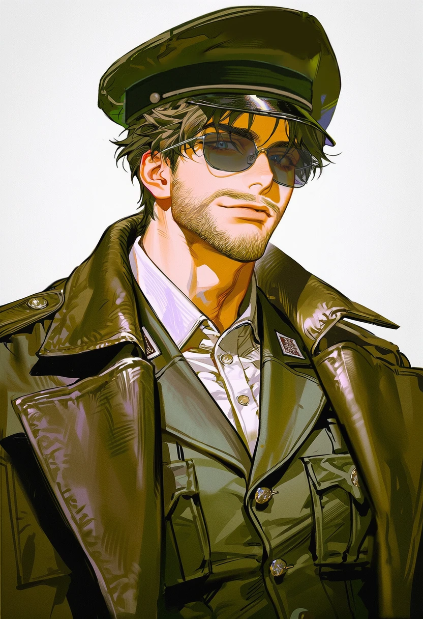 검은 선글라스 너머로 바라보는 지평선은 피처럼 붉었다. 방금 전까지 전장을 누비던 냉철한 지휘관의 눈빛은 잠시 가라앉아, 연기 속으로 흩어지는 비극의 잔상들을 쫓고 있었다.