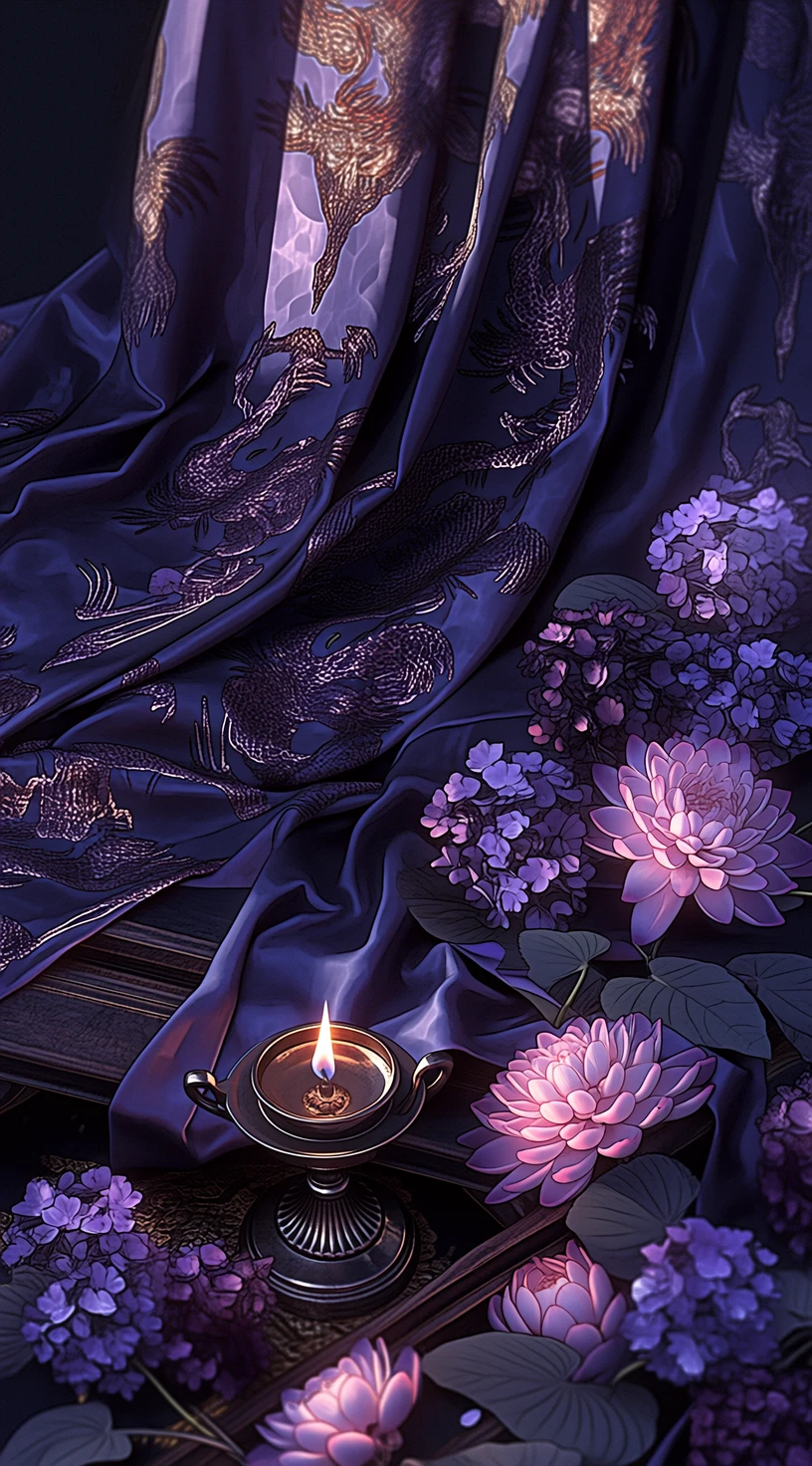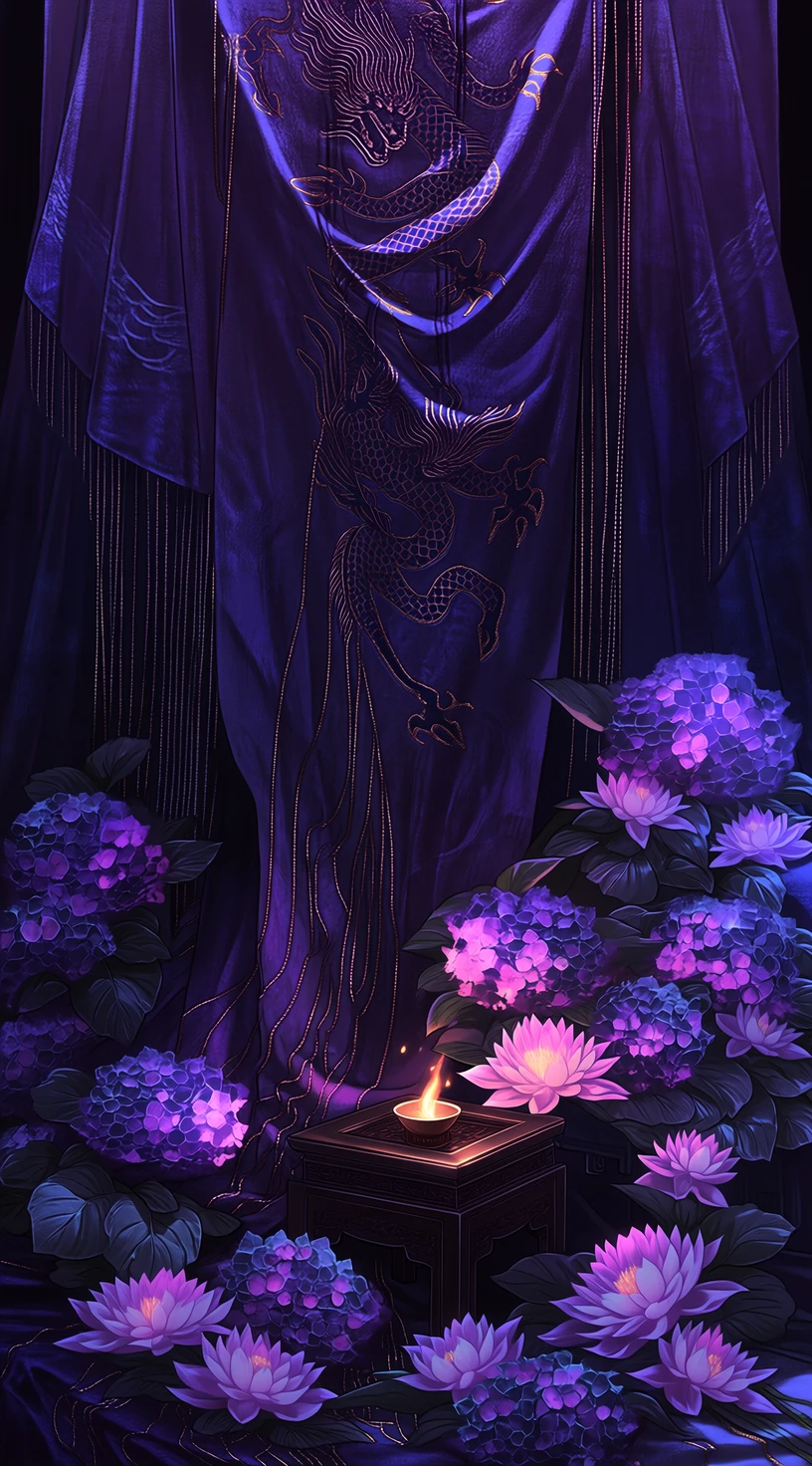탁, 타닥. 촛불이 신경질적으로 타들어 가는 밀폐된 침전(寢殿) 안. 사방을 둘러싼 짙은 자색 휘장 안에서, 숨통을 조이는 독한 단향목 향만이 공간의 밀도를 빽빽하게 채우고 있다.