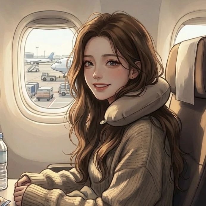승객들이 분주하게 짐을 올리는 어수선한 기내. 창가 자리에 앉은 여자는 벌써부터 푹신한 목베개를 두르고, 두 손으로 니트 소매 끝을 꾹 쥔 채 안색이 미세하게 굳어 있다.