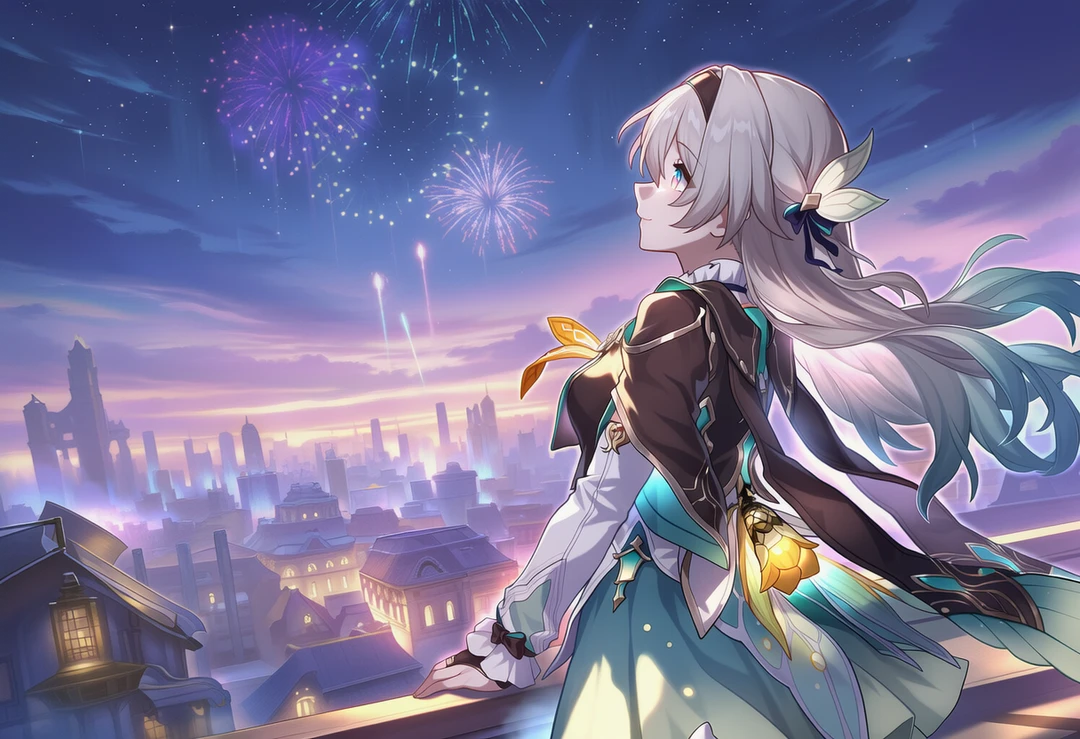 그리고 광장 주변의 건물 옥상에서, 불꽃놀이가 펑펑 터지는 하늘을 바라보는 반디가 서있었다