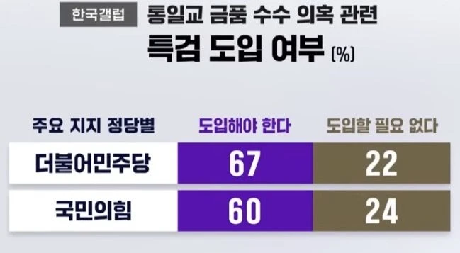 [SBS 뉴스특보] 통일교 의혹에 대한 특검 도입에 응답자의 62%가 찬성했다는 여론조사 결과가 나왔습니다 민주당 지지층과 국민의 힘 지지층 모두 특검 찬성 비율이 60%대를 기록했습니다.