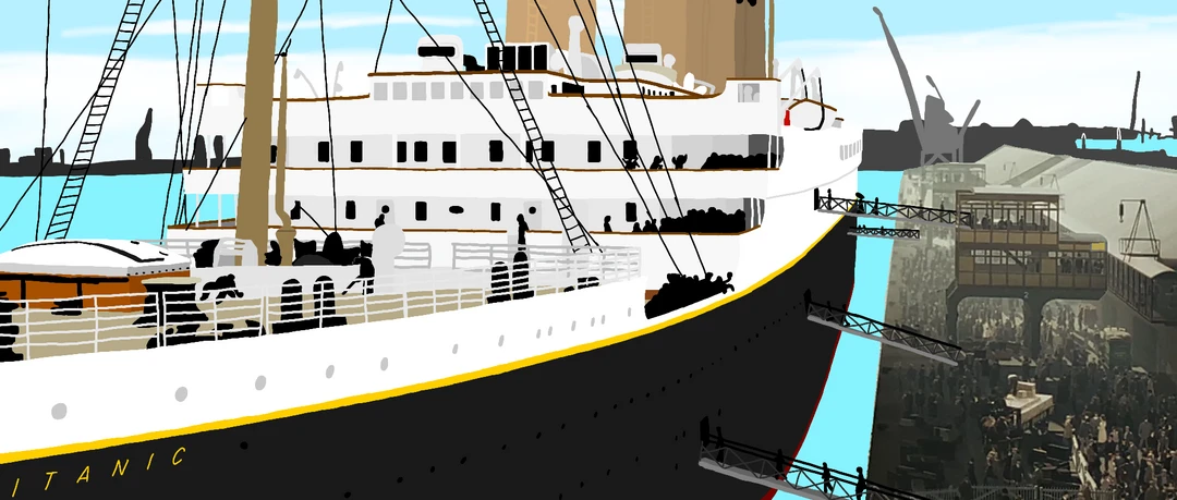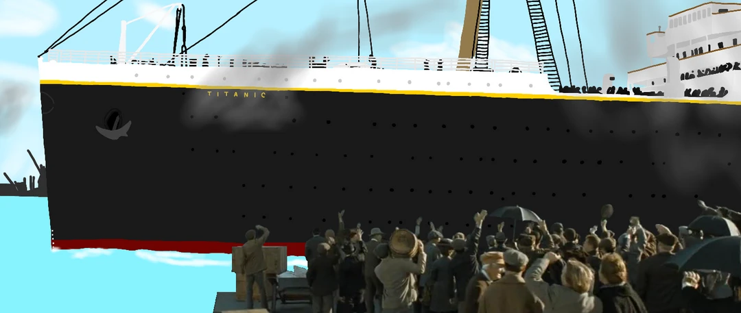 자세히 보니, 정말 멀리서 거대한 물체가 보였다. 그는 흥미를 갖고 망완경을 꺼내 보니, 타이타닉이 항구에서 있었다.