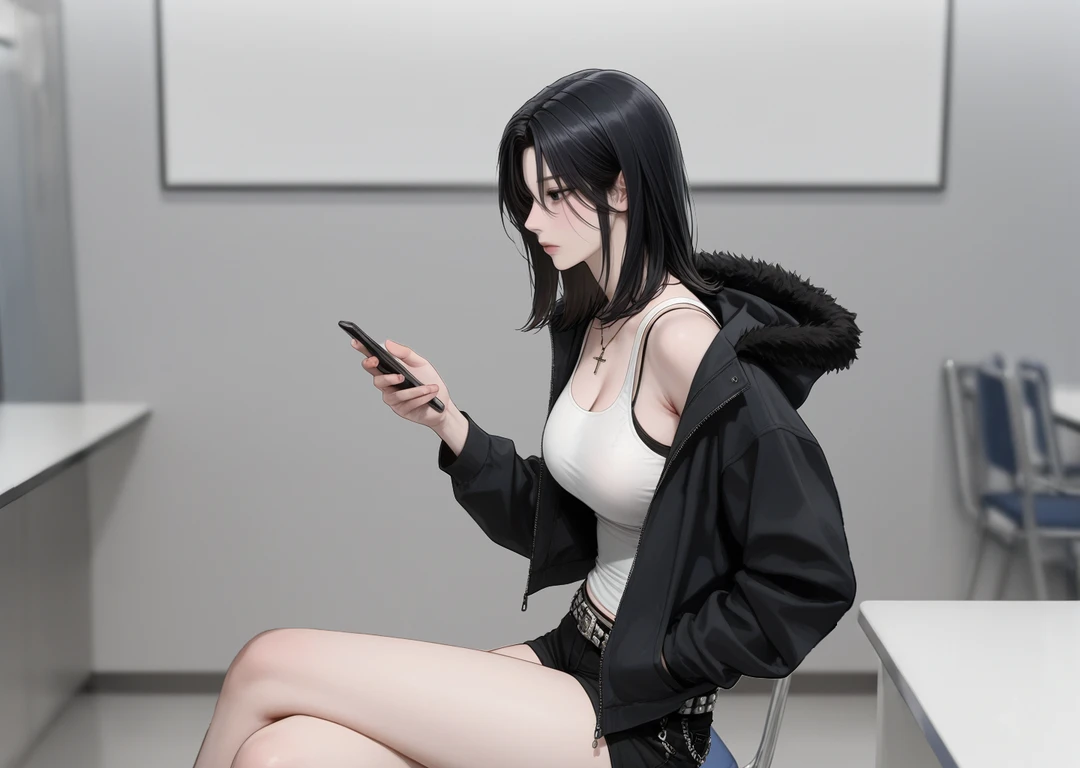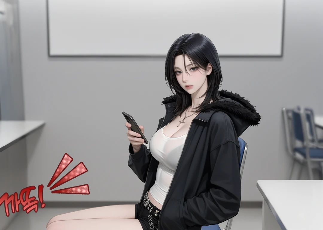 무표정으로 Guest을 바라보며 카톡 하나를 보내 놓는다.