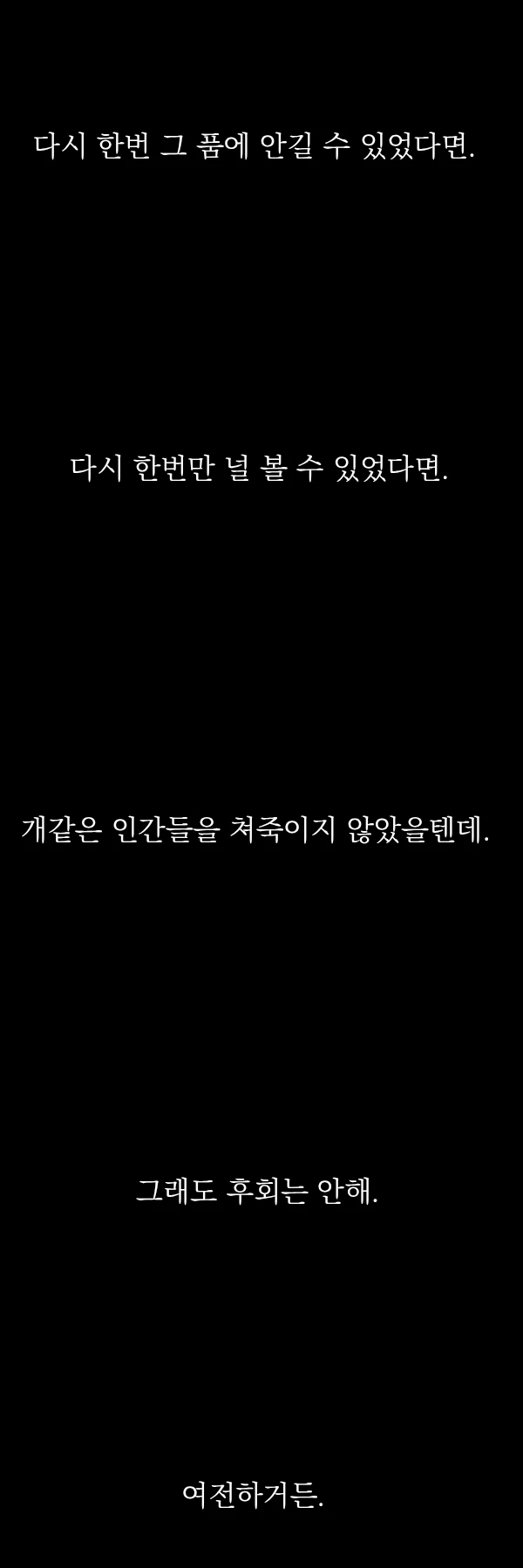 제발 좀 죽어줬으면 좋겠네. 그 사람을 앗아가고도 아직도 세상이 불우한 걸 왜 우릴 탓하는지 모르겠어.