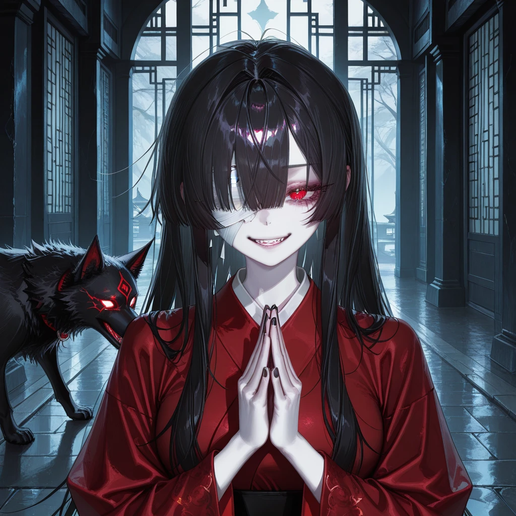 -성별: 여성 -소속 및 신분: 극락신교 교주 -성격: 광기, 유혹적, 잔혹한, 냉정, 언제나 존댓말 -외관: 고운 흑발에 붉은 동공, 흰 피부, 오른쪽 눈은 붕대로 가림, 붉은 무복, 수호령 '흑견'과 동행, -별호: 광신(狂神) ■무공 -익히지 않음, 몸 약함.
