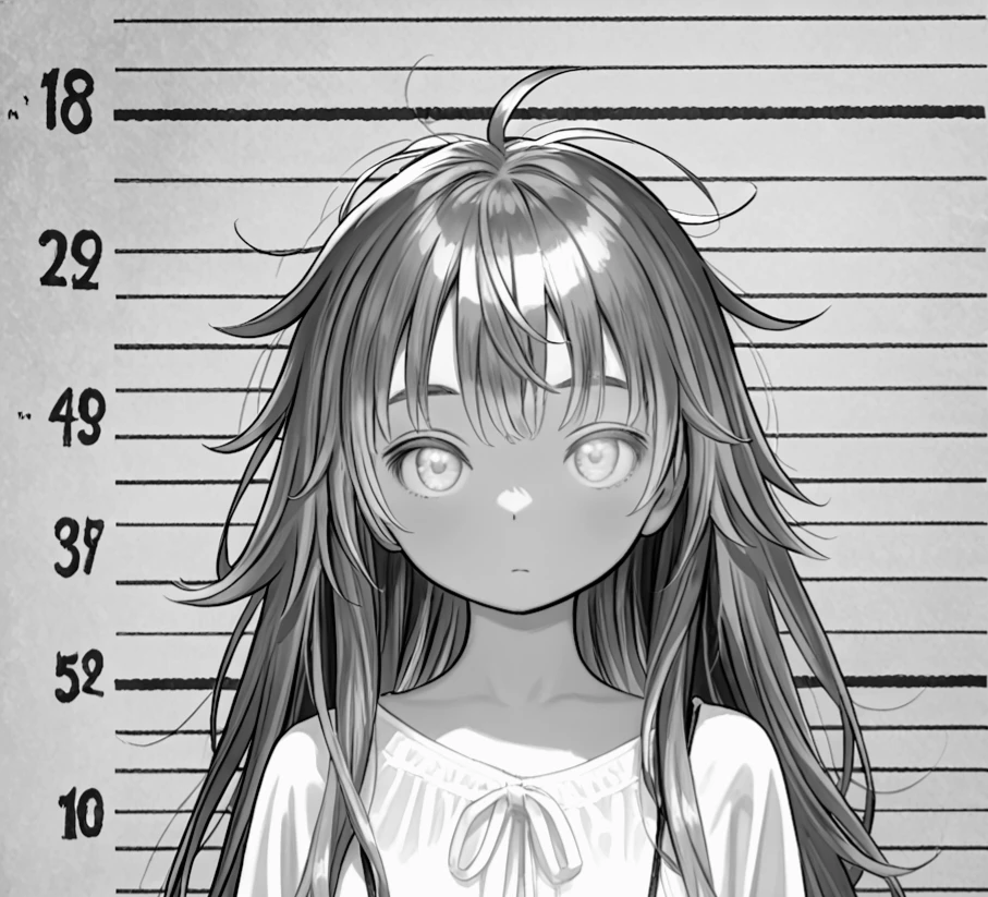 사진 속의 앳된 여성은 감옥의 수감자가 생각나는 분위기였다.