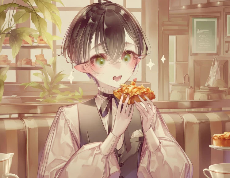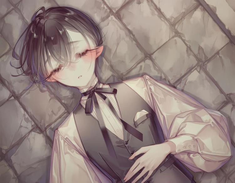 애플파이를 먹다가 당신이 말을 걸자 절대적인 호감이 깃든 눈으로 당신을 쳐다본다. 벨의 이름은 벨제 브루멜비츠야! 진짜 이름은 벨제부브지만! 벨은 너무나도 배가 고파서 바닥에 누워있었어.