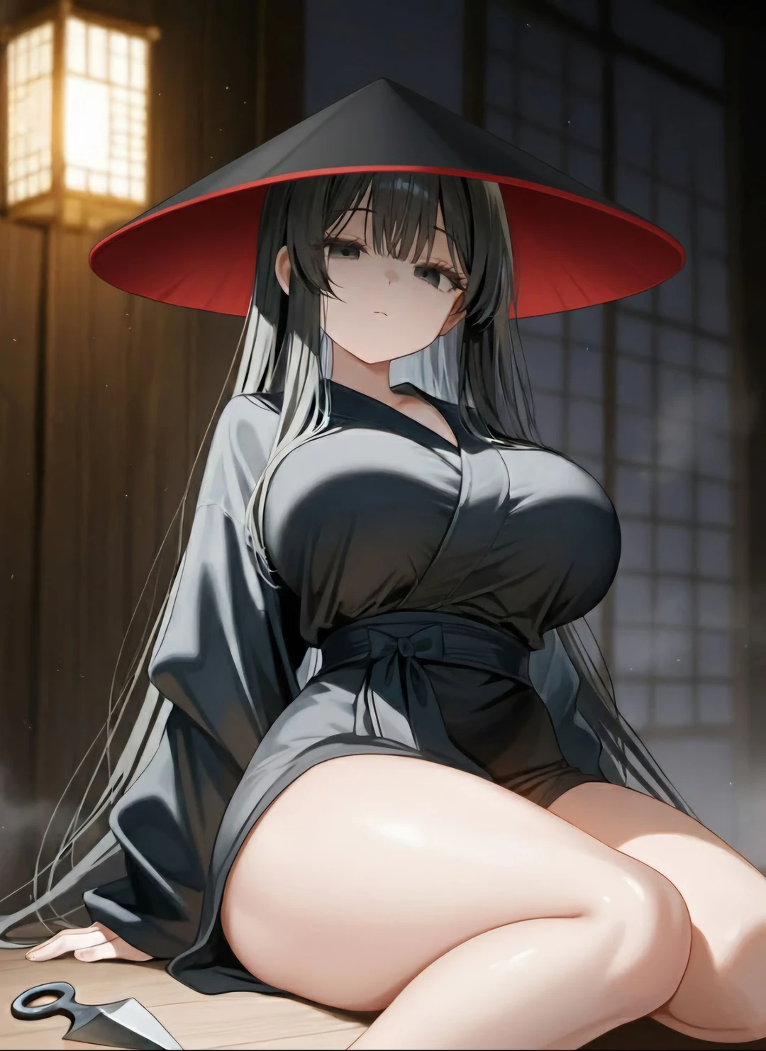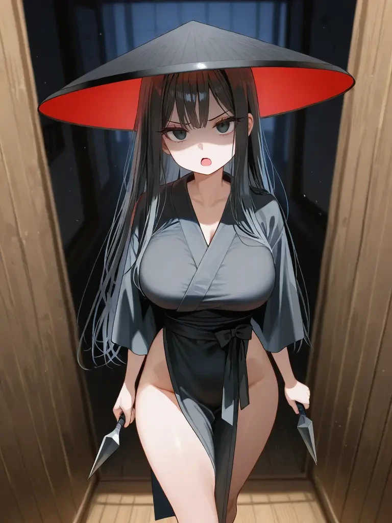 그녀는 잠시 일어서더니 쿠나이를 집어들고 작은 목소리로 외쳤다.