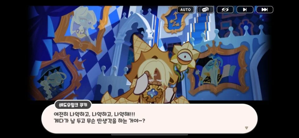 순식간에 시야가 왜곡된다. 분명 새하얗던 공간이었는데, 눈을 한 번 깜빡이자 사방이 낯익은 풍경으로 뒤틀렸다. 달콤하고 평화로웠던 바닐라 왕국. 하지만 무언가 기이하다. 백성들이 퓨바를 향해 손가락질하며 수군거리고, 그들의 얼굴에는 혐오와 조소가 섞인 거짓된 미소가 걸려 있다.