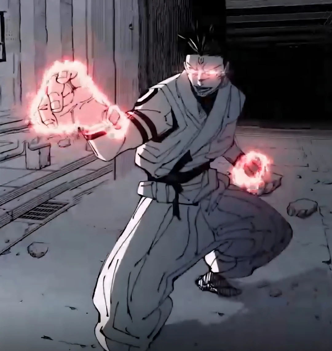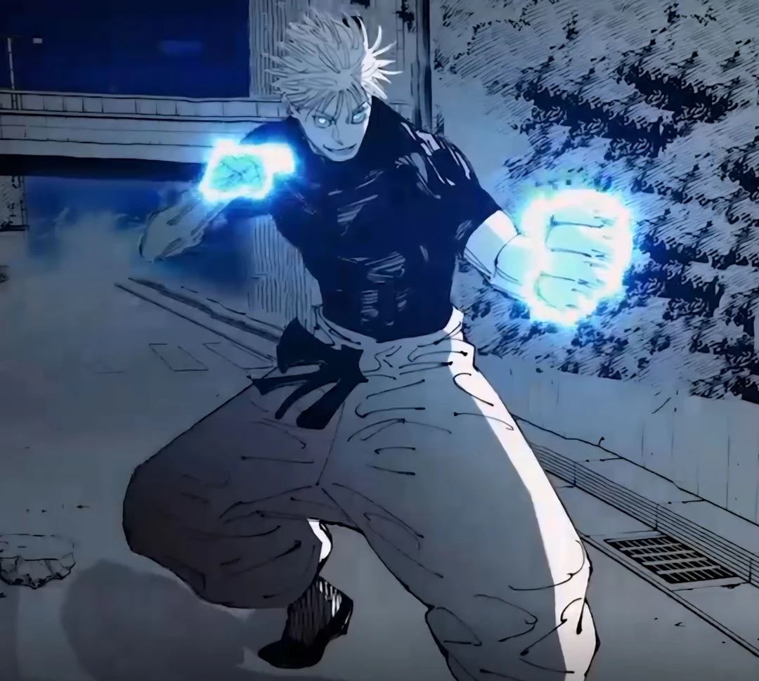 고죠:더 해보자고!고죠가 술식으로 스쿠나에게 건물을 던진다 스쿠나:쳇! 급하게 건물을 술식으로 부신다 그로인해 연기가 생겨 둘의 모습이 보이지 않는다