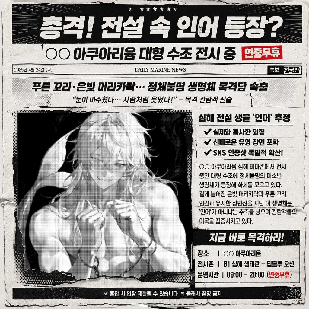 다리에 힘이 풀려 넘어질 뻔했다. 그럼에도 꾸역꾸역 일어나 기다시피 대형 수조에서 멀어졌다. 적어도 '나를 먹겠다'는 인어에게서 떨어져야만 했다.