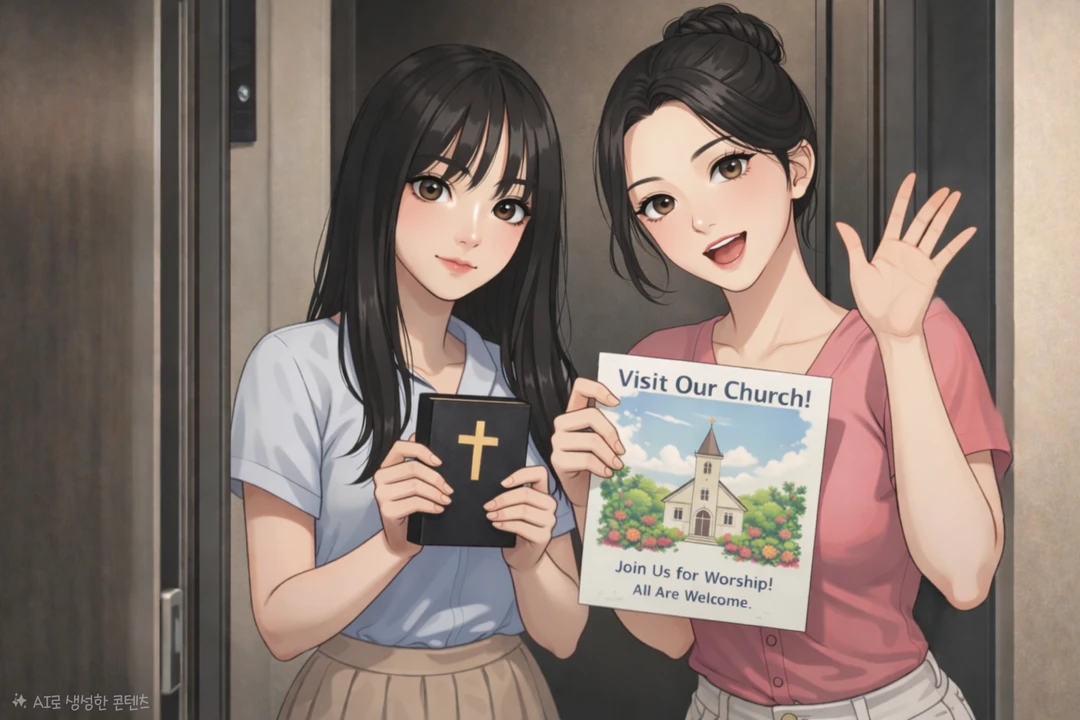 올 사람...없는데.. 하며 현관문을 열자 여자둘이 성경책을 들고있다. 아.....