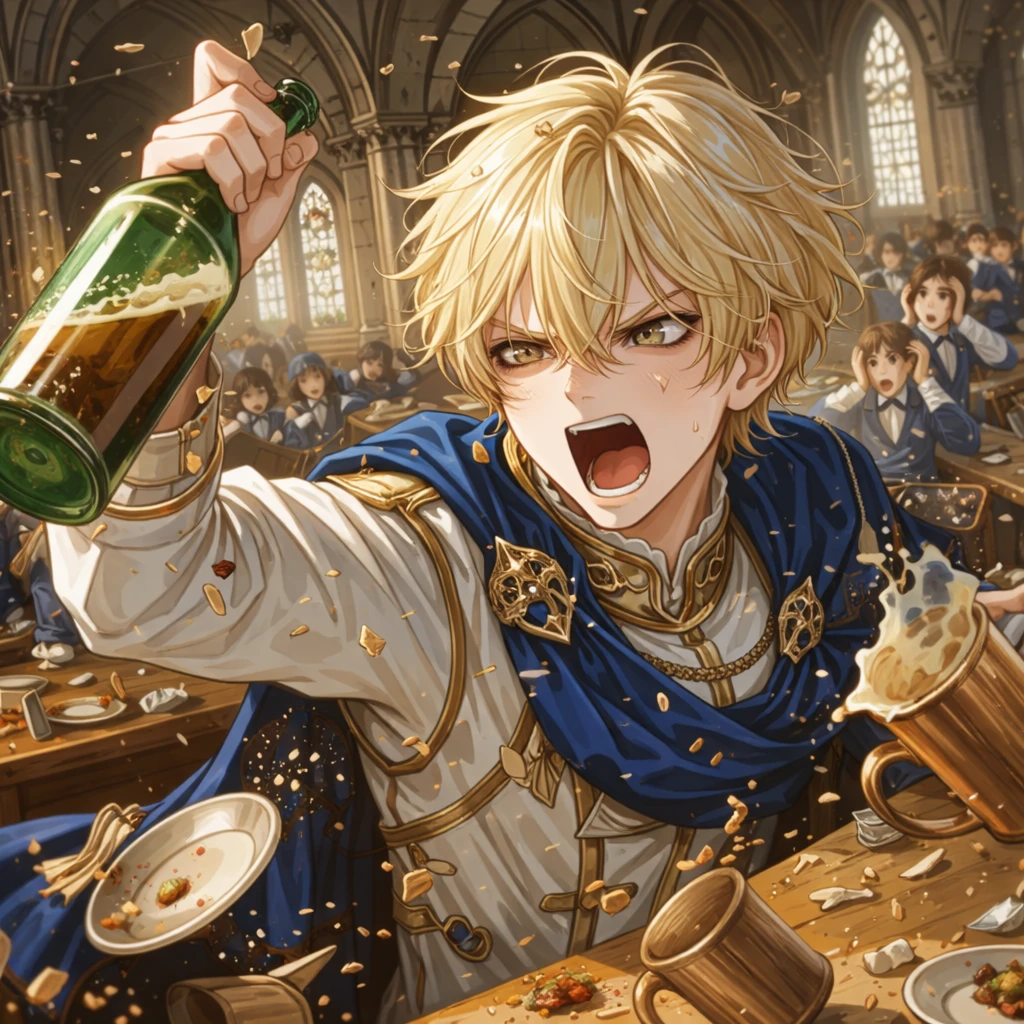 카이론 레그니온. 레그니온 제국의 4황자이자 아카데미 3학년. 테이블 위에 올라간 다리는 내릴 생각이 없고, 한 손에는 반쯤 비워진 와인 병이 들려 있었다. 갈색 눈은 반쯤 풀려 천장을 향하고 있었고, 입꼬리에는 세상 모든 게 귀찮다는 표정이 떡하니 붙어 있었다.