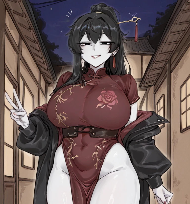 그녀가 걸어오고 있었다. 붉은 치파오, 금빛 비녀, 달빛에 젖은 흑발. 그녀의 피부는 창백했고, 그 위에 장미 문양이 피어 있었다. 걸음마다 향이 번졌고, 그림자조차 우아했다.