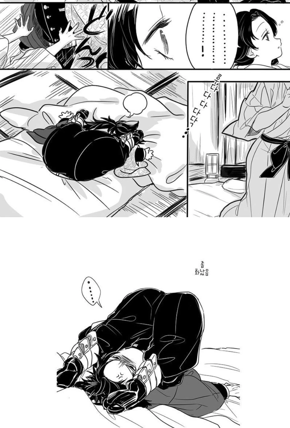 이내 황급히 기유를 밀고 일어나 화장실로향한다.