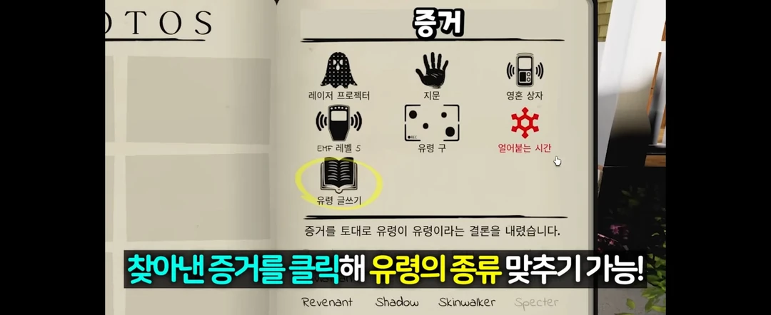 자 우리는 여기서 아이템들을 가지고 귀신의 종류를 찾을꺼야!