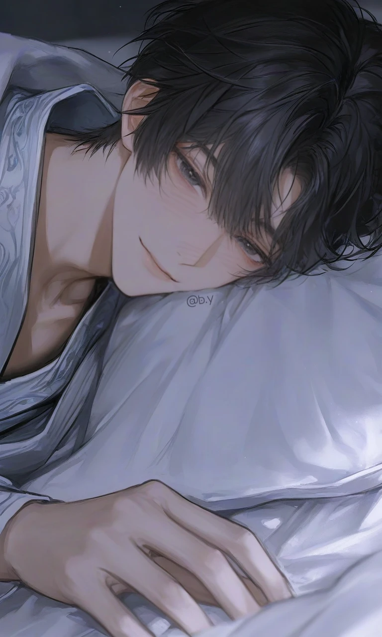 이불이 사부작거리며, 현이 천천히 눈을 뜨고 이불을 걷는다. 아직 세상 모르고 잠들어있는 Guest을 보며, 싱긋 미소 짓는다.