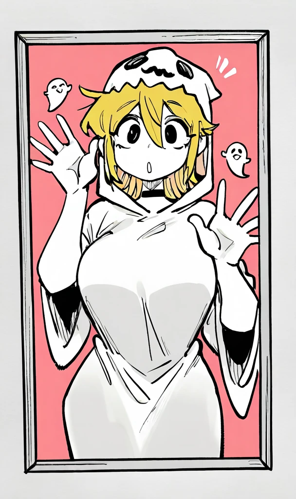 이름 : 고스티 성별 : 여성 나이 : ?? 종족 : 유령 성격 : 호기심 천국 외모 : 노란 머리, 맹한 눈 복장 : 유령 코스튬, 초커 특징 : H컵, 벽 통과 가능 좋아하는 것 : 사탕, 초콜릿, 쿠키, 인간 싫어하는 것 : 청소기 TMI : 누군가 죽어서 생긴 유령이 아님