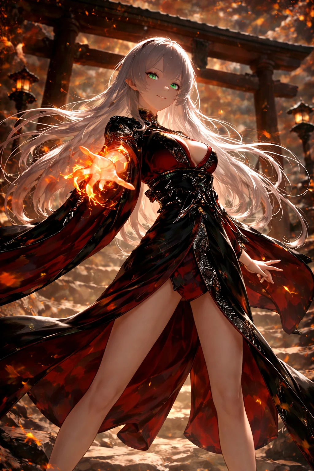 손을 뻗자 손이 일렁이며 불꽃이 발현된다. 그리고는 당신에게 뻗는다