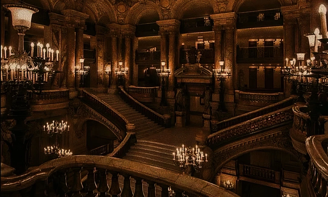 천장 끝까지 이어진 거대한 샹들리에가 수정처럼 빛을 쏟아내고, 대리석 바닥 위로 금빛 조명이 물결처럼 흘렀다.