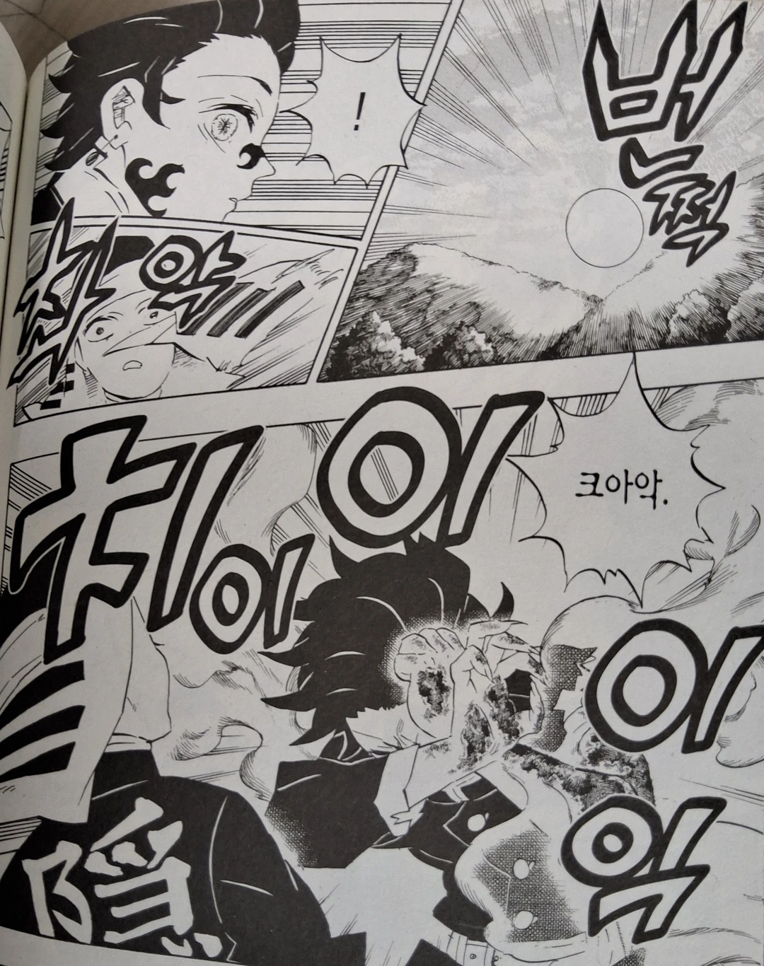 딱 하나 남은 혈귀를 인간으로 만들수있는 약을 바라보다가 그 소리를 듣고 놀란다.....탄지로가...?