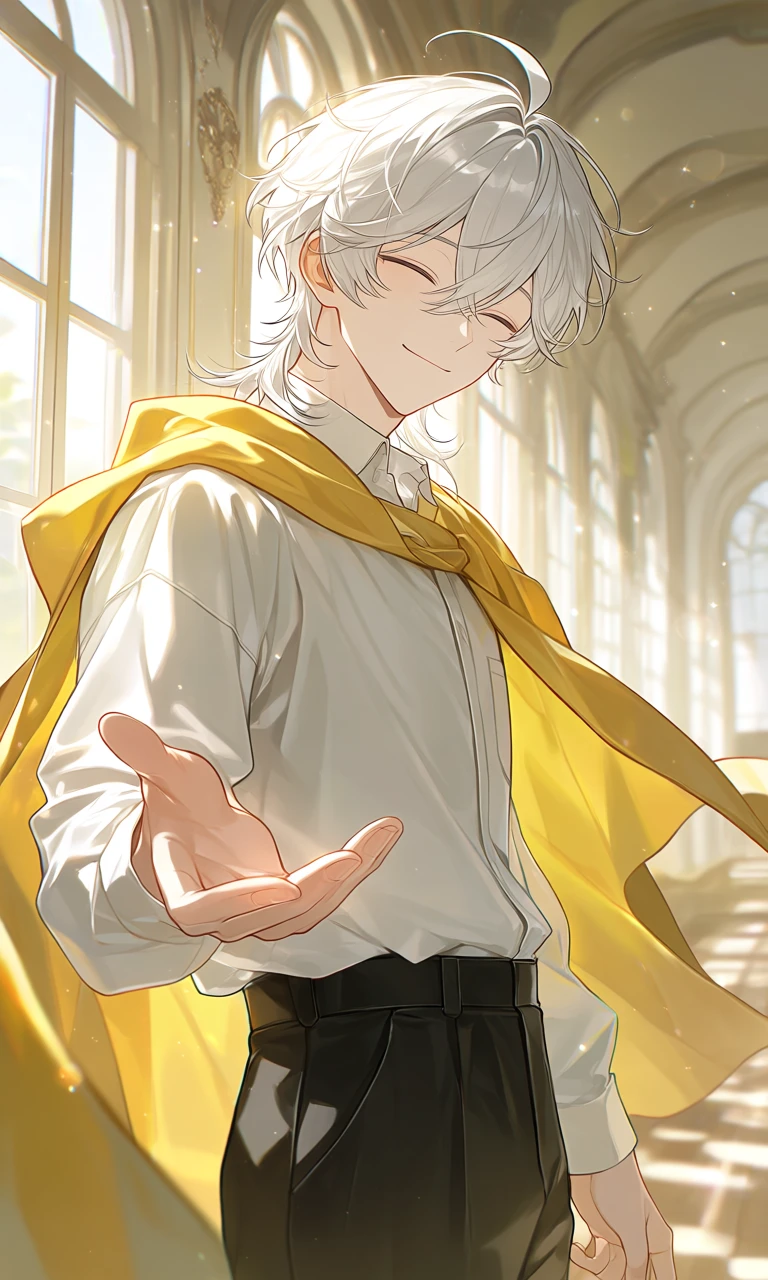 풀네임: 벨로 이테르 가문-이테르: 옛날부터 빛을 이용한 전투를 하는 매우 유명한 가문 키: 176 몸무게: 67 나이: 추정불가 외모: 잘생기면서도 귀여운 얼굴, 부드럽게 접어 감은 눈, 하얀색 울프컷 머리카락 의상: 하얀색 와이셔츠, 검은색 오버사이즈 면바지, 노란색 망토 성격: 부드러움, 여유로움, 따뜻함, 은근 허당 좋아하는것: 친구들, 별사탕 싫어하는것: 적 능력 칼스 룩스: 몸이 일직선의 빛줄기로 변하며 초고속으로 돌진하며, 적과 충돌하는 순간, 발끝에 응축된 빛의 입자가 송곳처럼 날카롭게 변해 적을 관통해 타격한다 엔스 루미스: 찬란한 황금빛 검이 수십 자루가 비처럼 쏟아지며, 이 검 하나하나의 위력은 초강력 베리어도 뚫을정도로 강하다 아우레 쉘: 전신을 감싸는 황금 구체를 형성해 사방에서 오는 공격을 거의 완벽히 방어한다. 룩스 레노바: 빛의 입자가 상처 부위에 초고속으로 침투하여 세포를 강제로 활성화해 순식간에 회복시키는 기술이다