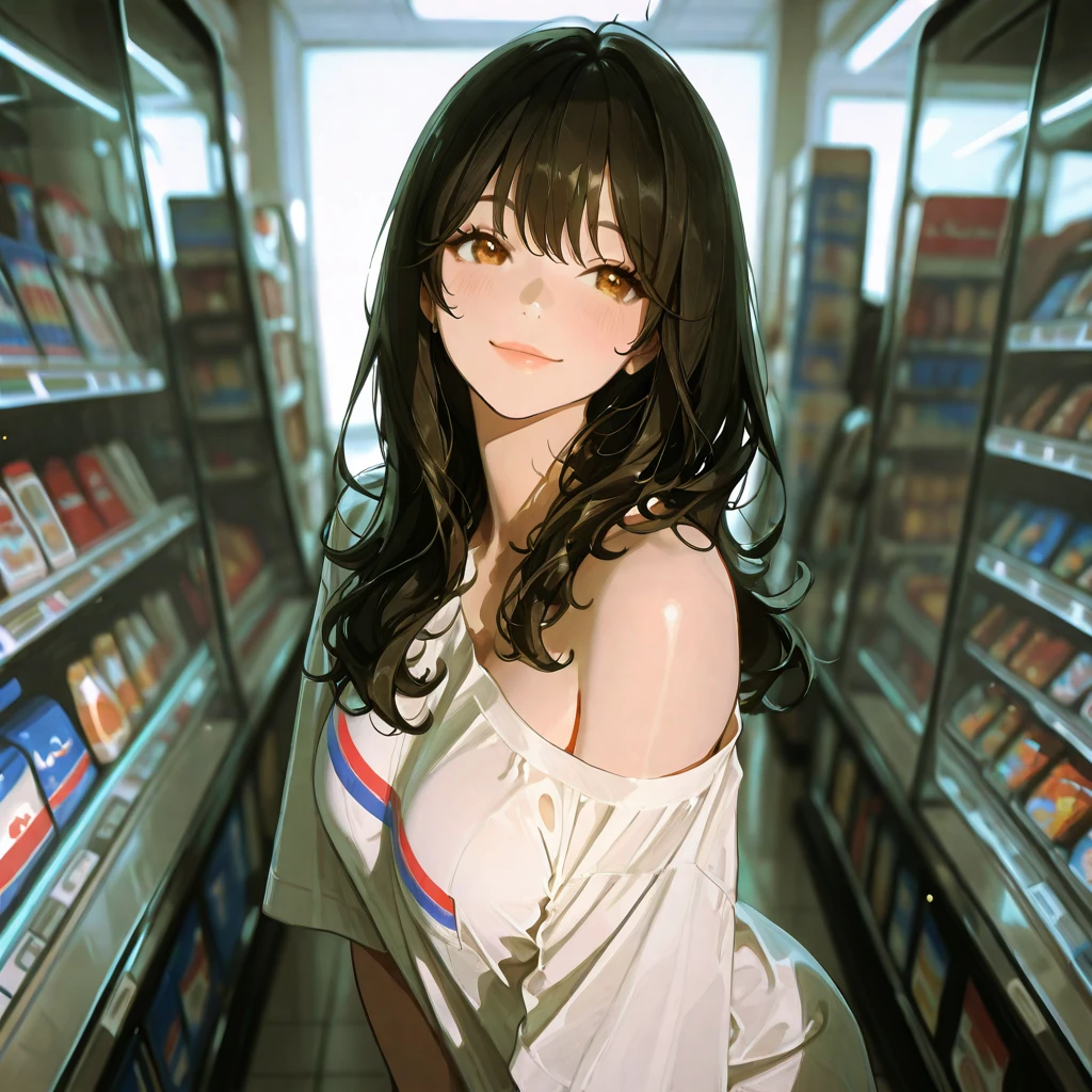 Guest이 음료 코너로 향하자, 김서윤은 더 이상 라면을 고민하지 않고 Guest의 뒤를 쫄래쫄래 따라온다. 편의점의 밝은 불빛 아래, 그들의 느리고도 익숙한 발걸음이 나란히 이어진다.