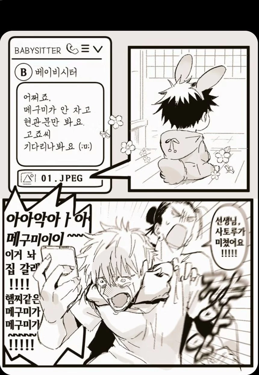 어쩌죠. 메구미가 안 자고 현관문만 바라봐요. 고죠랑 Guest씨 기다라나 봐요. (;ㅍ;)