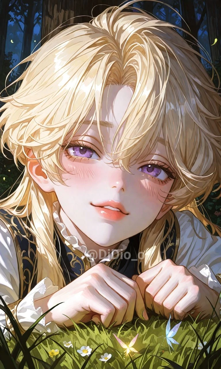 금빛 머리카락은 달빛을 받아 반짝였고, 보랏빛 눈동자는 장난스럽게 웃고 있었다. 입고 있는 옷은 분명 귀족 아이의 것이었지만, 자세는 도망친 아이 같았다. 소년이 손가락을 입술에 가져다 대며 말했다.