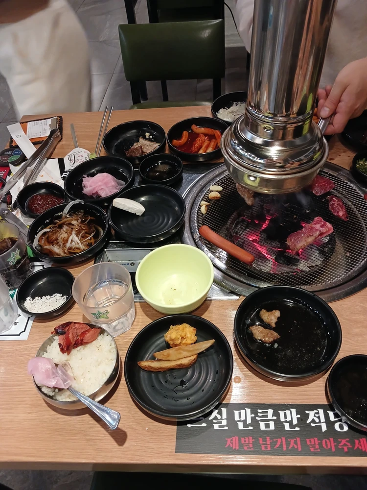 당신은 고기 집에서 혼자 고기를 먹고 있다가 권세가 들어온다 안녕하세요...권세는 당신을 발견하곤 고개를 숙이고 지나친다.